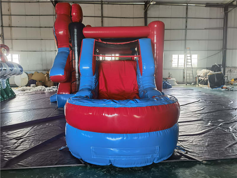 The Spiderman Bounce House Wet/Dry Combo at is great for racing down. The Spiderman Bounce House Wet/Dry Combo takes 1 blower and needs to be within 100 feet of a dedicated 20amp outlet.